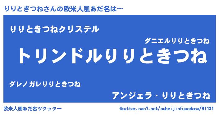 | 男性向けラノベタイトル風あだ名 | 『りりときつね~年齢イコール彼女いない歴の魔法使い~』 |
