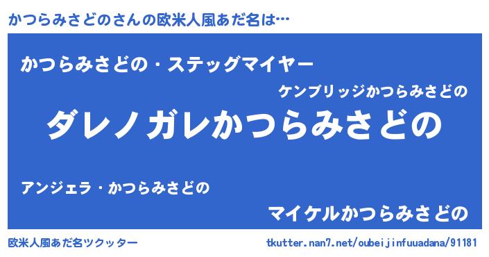 | 意味不明あだ名 | 『住所不定無職かつらみさどの(65歳)』 |