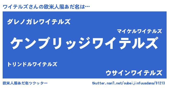 | 男性向けラノベタイトル風あだ名 | 『Re:ワイテルズから始める異世界生活』 |