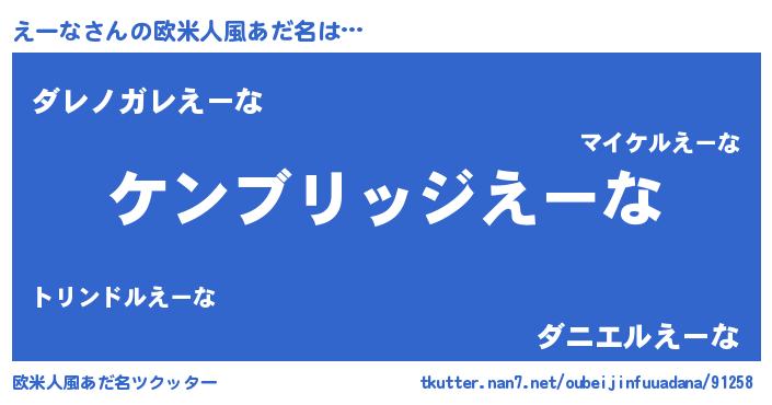 | 意味不明あだ名 | 『自称えーな』『住所不定無職えーな(1歳)』 |
