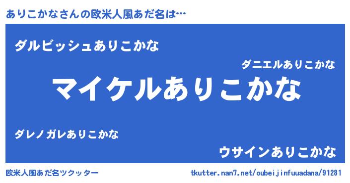 | 男性向けラノベタイトル風あだ名 | 『アリコカナアートオンライン』 |