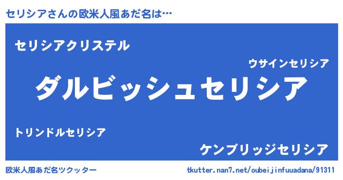 | 意味不明あだ名 | 『永久保存セリシア』『自称セリシア』 |