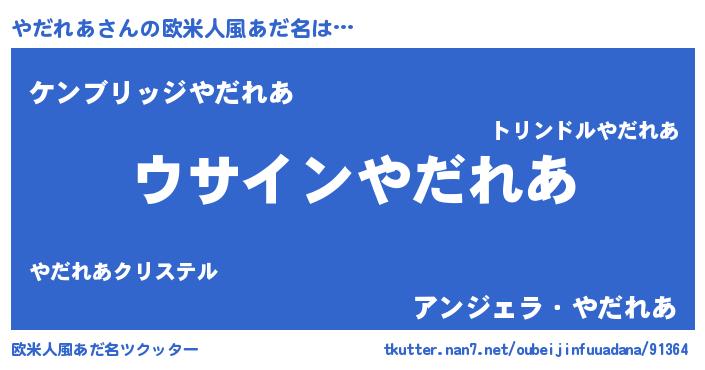 | 男性向けラノベタイトル風あだ名 | 『やだれあの嫁は女の子じゃないと思った?』 |