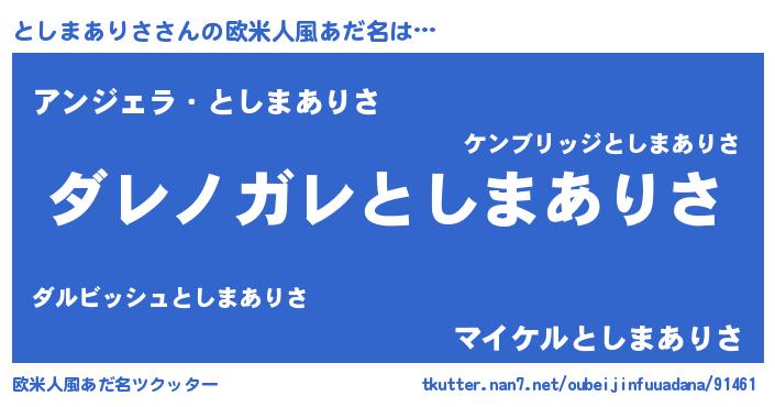 | 意味不明あだ名 | 『住所不定無職としまありさ(12歳)』 |