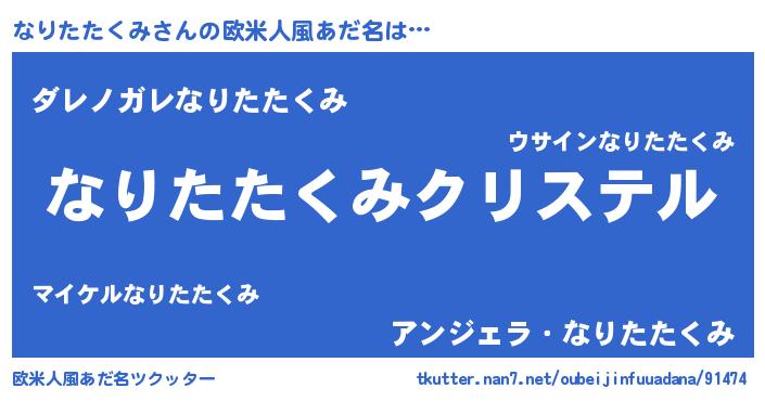 | ファンタジー風あだ名 | 『エターナルナリタタクミー』 |