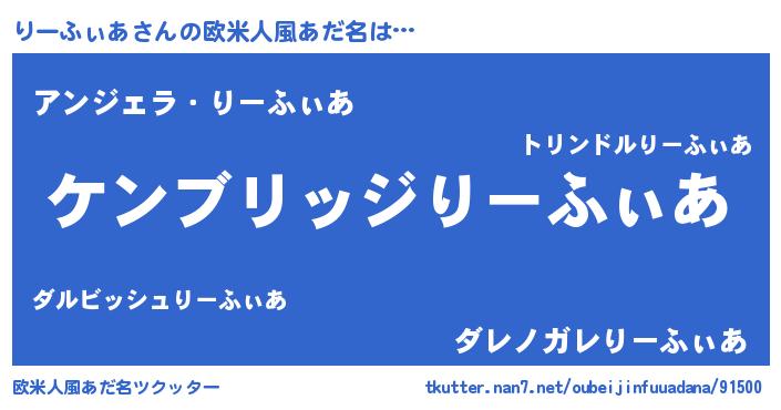 | ヘコむあだ名 | 『りーふぃあ(笑)』『りーぷりん』 |