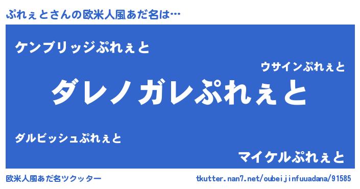 | 意味不明あだ名 | 『住所不定無職ぷれぇと(1歳)』 |