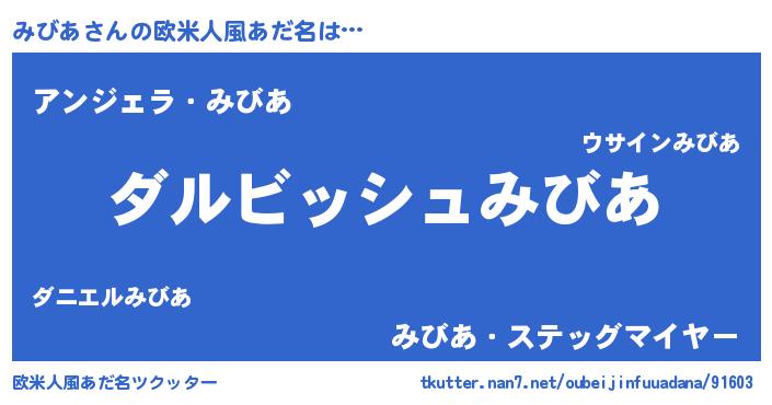 | 女子向けラノベタイトル風あだ名 | 『みびあの契約王妃』『死神みびあの再婚』 |