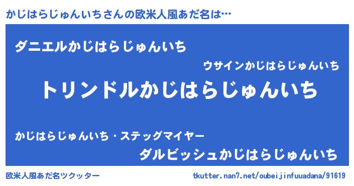 | 男性向けラノベタイトル風あだ名 | 『転生したらかじはらじゅんいちだった件』 |