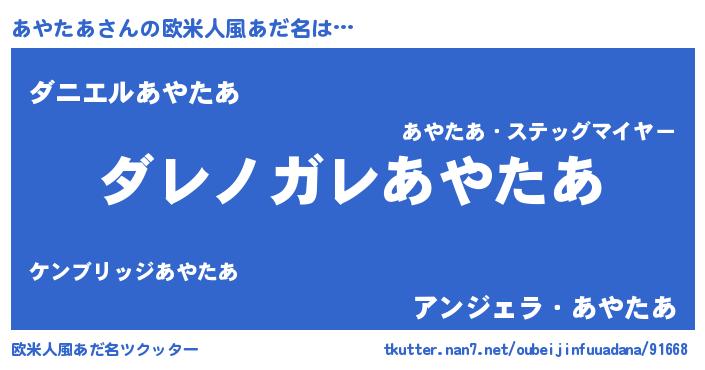 | 意味不明あだ名 | 『住所不定無職あやたあ(84歳)』 |