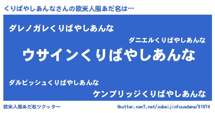| 男性向けラノベタイトル風あだ名 | 『くりばやしあんなの嫁は女の子じゃないと思った?』 |