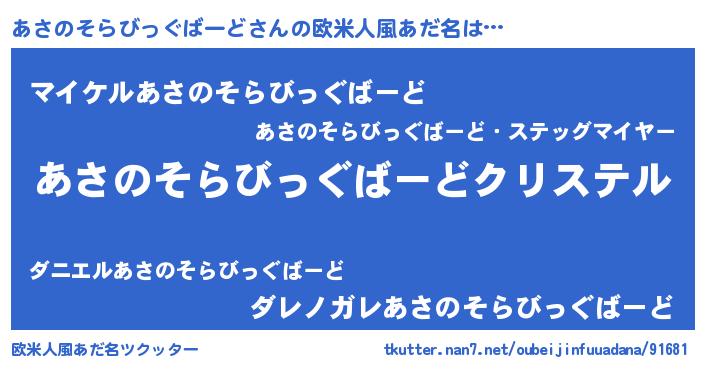 | 男性向けラノベタイトル風あだ名 | 『やはりあさのそらびっぐばーどの青春ラブコメはまちがっている 』 |