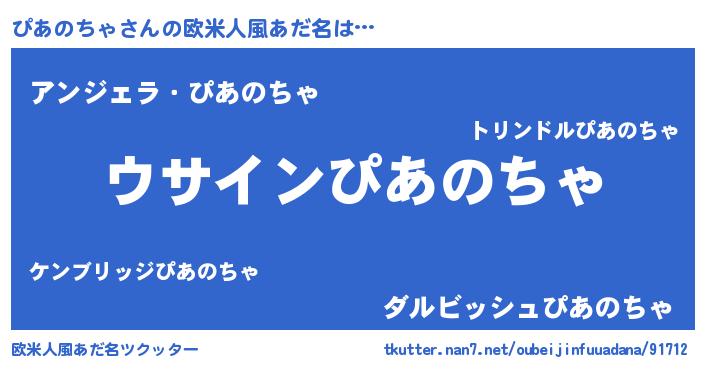 | 男性向けラノベタイトル風あだ名 | 『ぴあのちゃの嫁は女の子じゃないと思った?』 |