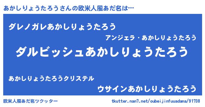 | 男性向けラノベタイトル風あだ名 | 『あかしりょうたろうという概念が存在しない退屈な世界 』 |