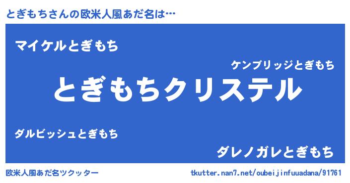 | ファンタジー風あだ名 | 『エターナルトギモチー』『トギフェル』 |