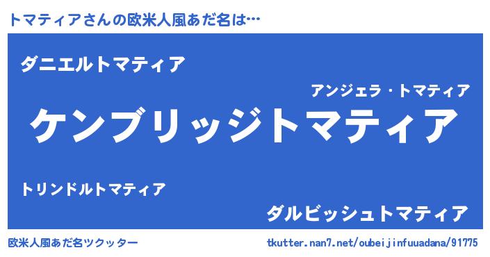 | 意味不明あだ名 | 『自称トマティア』『永久保存トマティア』 |