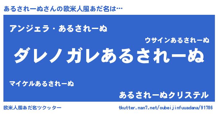 | 意味不明あだ名 | 『住所不定無職あるされーぬ(56歳)』 |