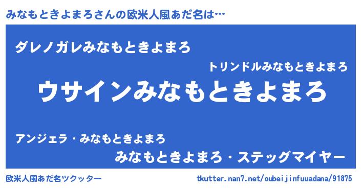 | 男性向けラノベタイトル風あだ名 | 『みなもときよまろの嫁は女の子じゃないと思った?』 |