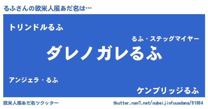 | 女子向けラノベタイトル風あだ名 | 『乙女ゲームの破滅フラグしかない悪役るふに転生してしまった…』 |