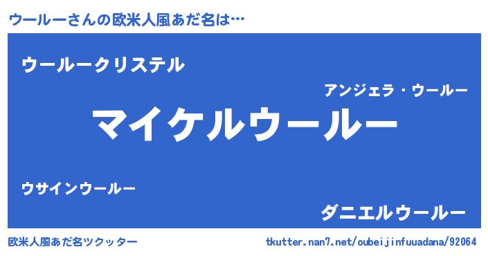 | ポケモン風あだ名 | 『ウーチュウ』『ウールダネ』 |