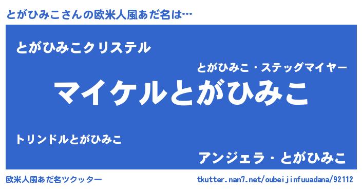 | 女子向けラノベタイトル風あだ名 | 『とがひみこ姫と円卓の騎士』 |