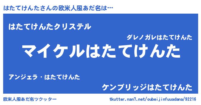| 男性向けラノベタイトル風あだ名 | 『ハタテケンタアートオンライン』 |