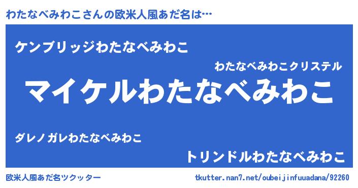 | 女子向けラノベタイトル風あだ名 | 『(仮)わたなべみわこのやんごとなき事情』 |