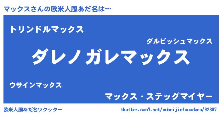 | 男性向けラノベタイトル風あだ名 | 『この素晴らしい世界にマックスを!』 |