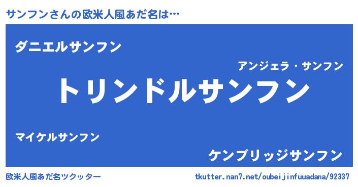 | 男性向けラノベタイトル風あだ名 | 『サンフン~年齢イコール彼女いない歴の魔法使い~』 |