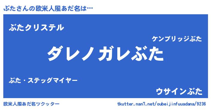 | ポケモン風あだ名 | 『ブータイ』『ブタダネ』『ヒブタ』 |