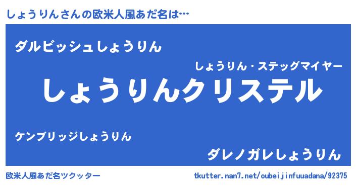 | 男性向けラノベタイトル風あだ名 | 『やはりしょうりんの青春ラブコメはまちがっている 』 |