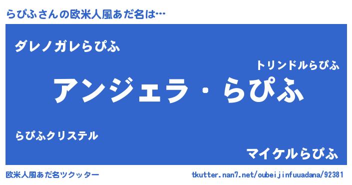 | 男性向けラノベタイトル風あだ名 | 『はたらくらぴふさま!』『らぴふの憂鬱』 |