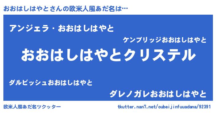 女子向けラノベタイトル風あだ名 | 『おおはしはやと伯爵の花嫁』 |