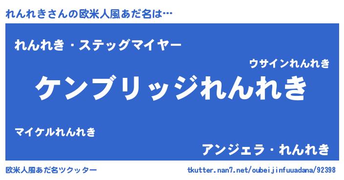 | ヘコむあだ名 | 『れん太郎』『れんふぇ~』『つくし』 |