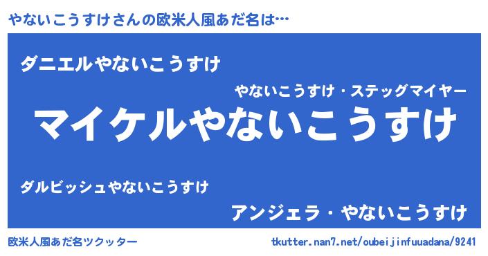 | 女子向けラノベタイトル風あだ名 | 『(仮)やないこうすけのやんごとなき事情』 |