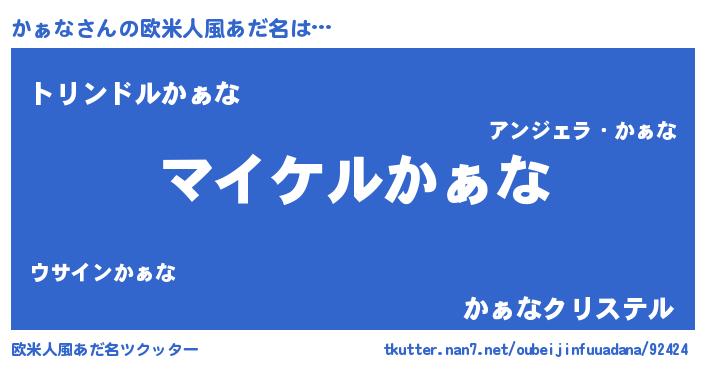 | ヒーロー風カッコイイあだ名 | 『スーパーカァナ』『ウルトラかぁなマン』 |