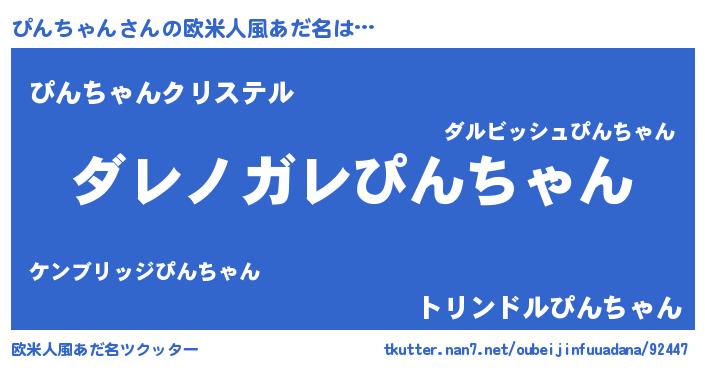 | 男性向けラノベタイトル風あだ名 | 『この素晴らしい世界にぴんちゃんを!』 |
