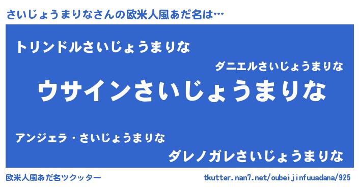 | 意味不明あだ名 | 『とにかく怪しいさいじょうまりな』 |