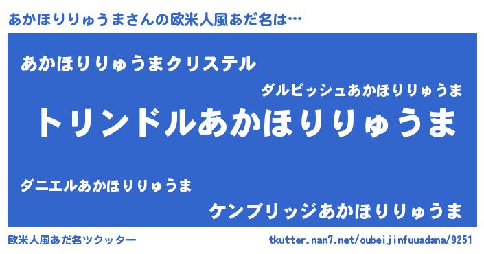| 男性向けラノベタイトル風あだ名 | 『転生したらあかほりりゅうまだった件』 |