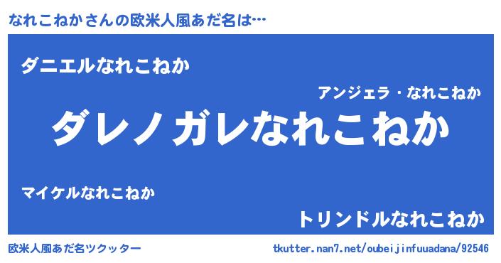 | 女子向けラノベタイトル風あだ名 | 『なれこねかが死なない童話 林檎のなれこねかの診療簿』 |