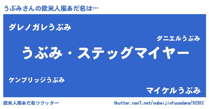 | 意味不明あだ名 | 『住所不定無職うぶみ(43歳)』『自称うぶみ』 |