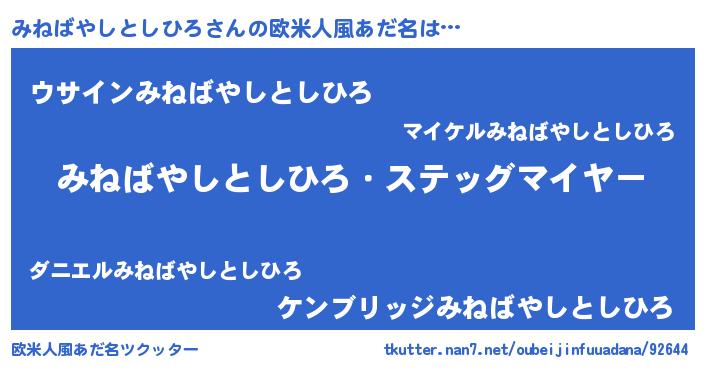 | 意味不明あだ名 | 『とにかく怪しいみねばやしとしひろ』 |