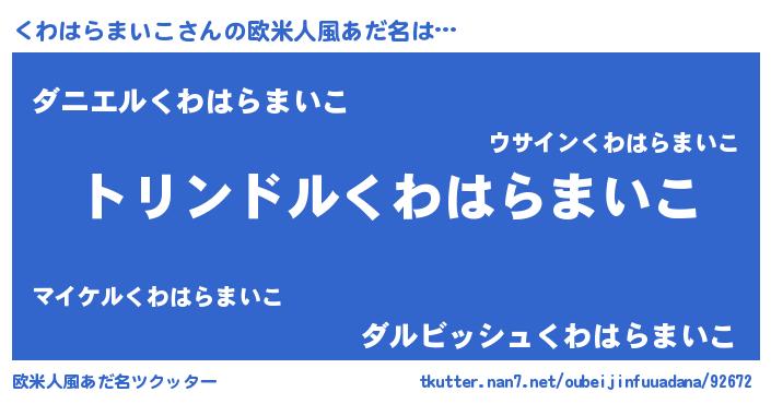 | ヘコむあだ名 | 『くわはらまいこ(小並感)』『くわぷりん』 |