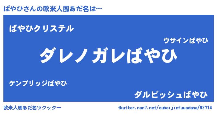 | 意味不明あだ名 | 『住所不定無職ばやひ(39歳)』『自称ばやひ』 |