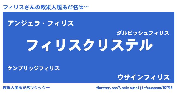 | 男性向けラノベタイトル風あだ名 | 『やはりフィリスの青春ラブコメはまちがっている 』 |