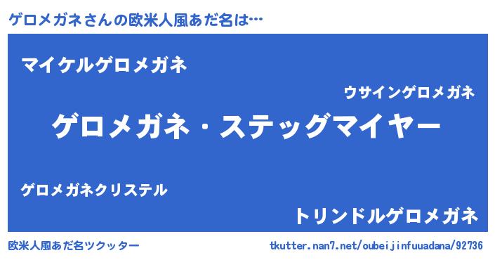 | 男性向けラノベタイトル風あだ名 | 『うちのゲロメガネが世界を掌握している!』 |