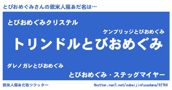 | ヘコむあだ名 | 『豆乳』『とびぷりん』『とびにゅー』 |