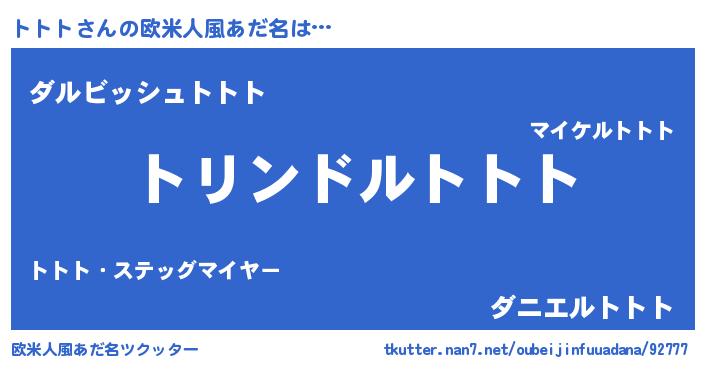| ポケモン風あだ名 | 『トトキング』『ゼニトト』 |