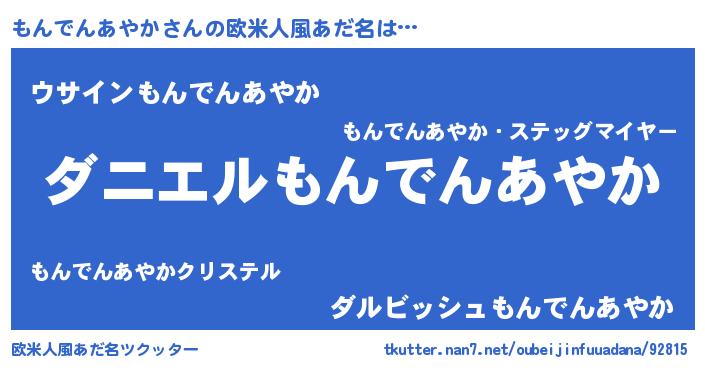 | ヘコむあだ名 | 『もんお』『もんでんあやか(爆)』 |