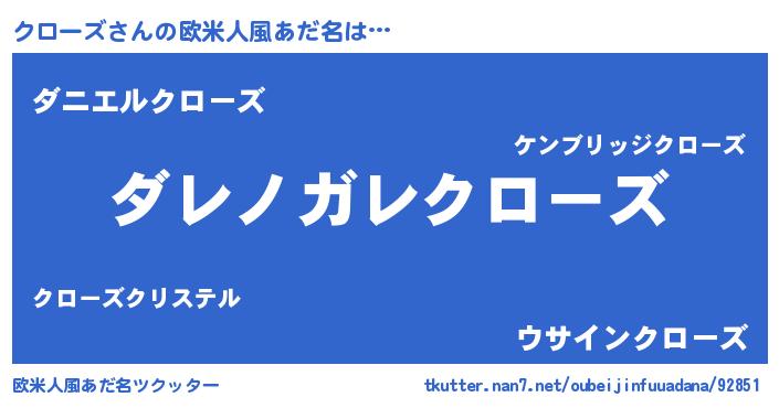 | ヒーロー風カッコイイあだ名 | 『仮面クロダー』『慈愛の使者クローズ』 |